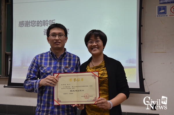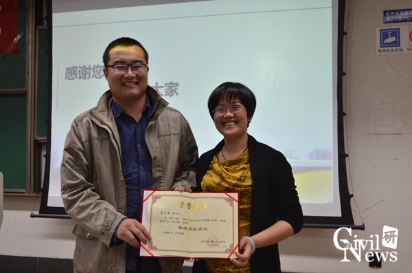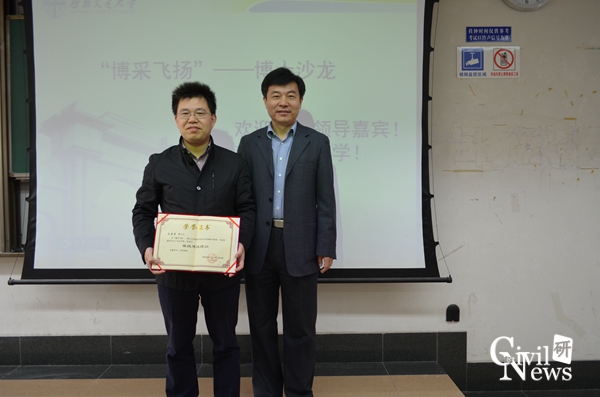 首先由祝经理做开场致辞,他强调研究生与博士生作为国家高素质人才在现阶段需注意多思考,多规划。随后祝经理介绍了参与此次活动的优秀毕业生代表梅大鹏博士与王森荣博士的个人经历,并为他们颁发“班级建设顾问”荣誉证书。