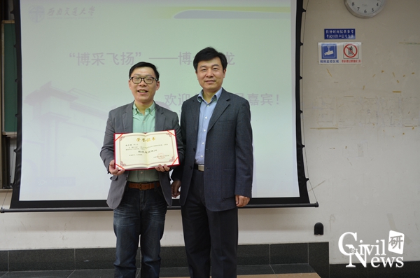 紧接着任万敏博士就工作方面与在场员工进行交流,他分析了近几年铁二院的招生情况,提醒同学们就业压力的日益增长对研究生及博士生的自身能力有了更高的要求。对于他的成功,他谈到有空杯心态即你想做什么?你只能做什么?只能你做的是什么?同时需得到肯定与机遇。