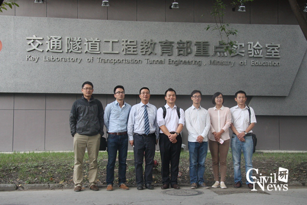 讲座结束后,在张志强教授的带领下,郭璞团队人员及部分老师、员工到交通隧道工程教育部重点实验室参观。张志强教授向郭璞团队介绍了实验室各仪器设备,最后在实验室前合影留念。