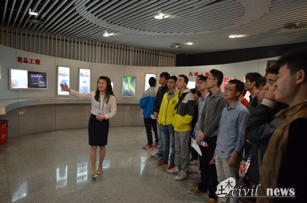 早上8点,新葡的京集团35222vip师生一行29人从犀浦校区出发,第一站是中铁八局建筑公司。首先,参观中铁八局建筑公司机关荣誉室,由公司员工为同学讲解企业的企业文化、企业荣誉和企业发展现状等。